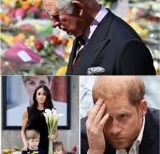 BREAKING — 2 MINUTES AGO! ‘Harry… bow your head,’ King Charles said, his voice shaking in the silent Palace. Meghan arrived with their children, clutching white flowers. ‘I am deeply saddened to announce that…’ What followed may haunt Britain forever.