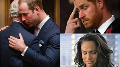 Darkness Over the Palace: Exactly at noon, the skies above London turned black. Buckingham Palace trembled in sorrow. Prince William led the royal brothers, bowing their heads in grief. Harry and Meghan trailed behind, their faces pale. King Charles’s heartbreaking cry echoed through the halls: ‘My wife… she is has…’”