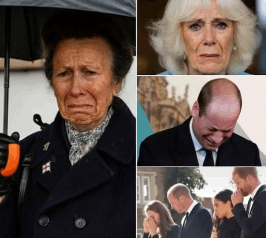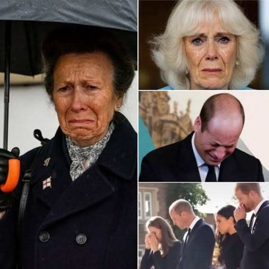 BREAKING — MINUTES AGO! Camilla’s voice cracked as she pleaded, “Please, bow your heads…” In an instant, the royal chamber was engulfed in grief. Prince William wept openly while Catherine clung to him for support. Princess Anne braved the stormy weather to witness the heartrending moment firsthand. Outside, Buckingham Palace stood blanketed in white, with mourners softly murmuring, “We are so sorry…”
