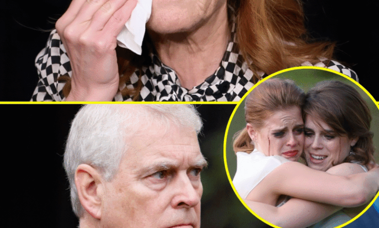 EMERGENCY — 3 MINUTES AGO! Sarah Ferguson , wiping away tears, ran straight into the Royal Court to announce the tragedy surrounding Prince Andrew after his titles were revoked. Princess Beatrice broke down, holding eugenie as though the world had fallen apart. The sisters cried out in agony: “No… Father, why must it end like this?”