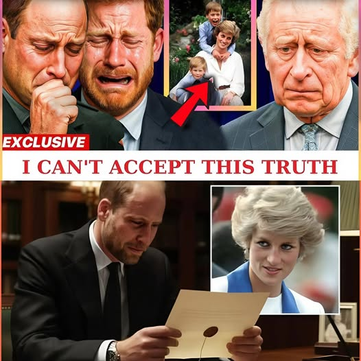 “He’s Not Your Father…” Prince William collapses in disbelief after reading Princess Diana’s final letter to her sons — a secret buried by the Palace for 30 years. Prince Harry is urgently summoned back to London. The once-hidden DNA results are finally revealed, confirming long-standing rumours. Then came the King’s trembling voice — words that will change the monarchy forever.