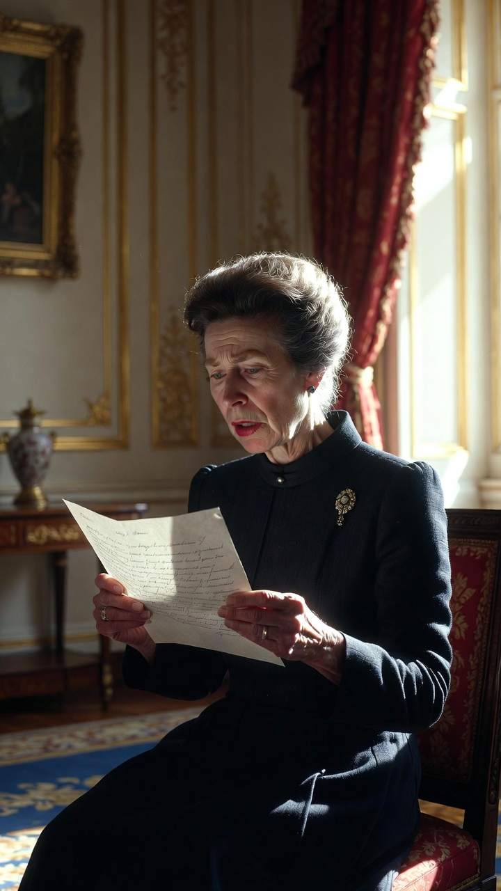 The words fell from Princess Anne’s lips like stones dropped into still water. She stood alone in the private sitting room of Gatcombe Park, a single cream envelope trembling between her fingers — its wax seal long broken by the passage of decades, yet somehow still carrying the faint scent of something floral. Something unmistakably hers.